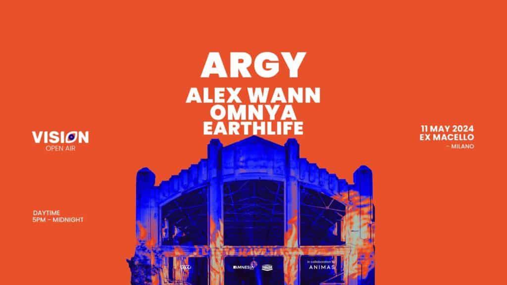 Sabato 11 maggio 2024 la line up di Vision Open Air propone la musica di Argy, Alex Wann, Omnya e Earthlife.